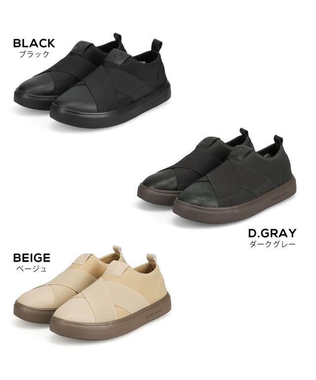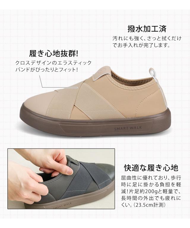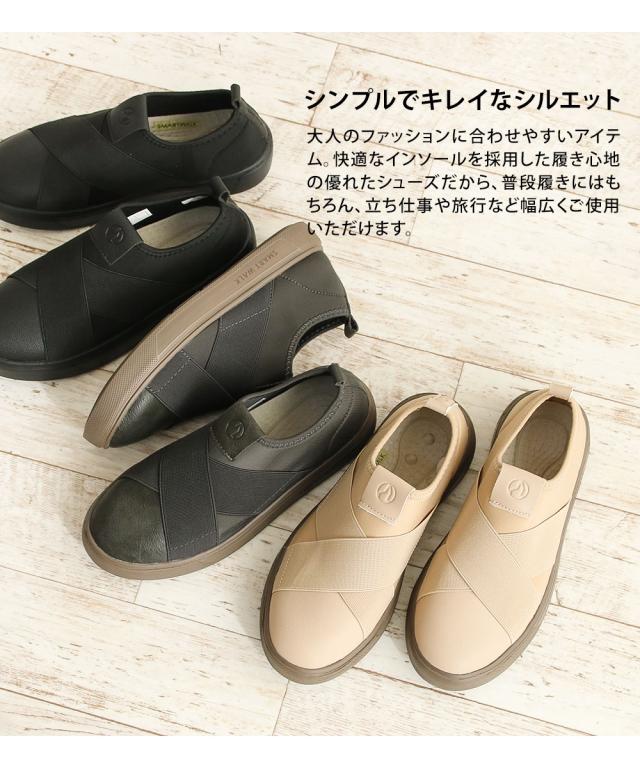 スリッポン レディース おしゃれ ツボ押し 凸凹インソール 衝撃吸収 婦人 靴 足裏マッサージ 疲れにくい 土踏まず アーチサポート 立ち仕事 運動 カジュアルシューズ 撥水 黒 グレー ベージュ スマートウォーク 2003