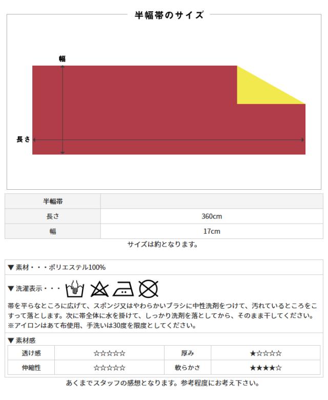 ![]() ![]() ![]() ![]() ![]() ![]() ![]() ![]() 商品説明 [サイズ] ワンサイズ [素材] ポリエステル100% [生産] 日本 [配送] 宅配便 シンプルな無地の半幅帯です。しっとりとやわらかく、締めやすいです。 浴衣から卒業式などの袴姿に使う袴下帯としてもご利用いただけます。 |