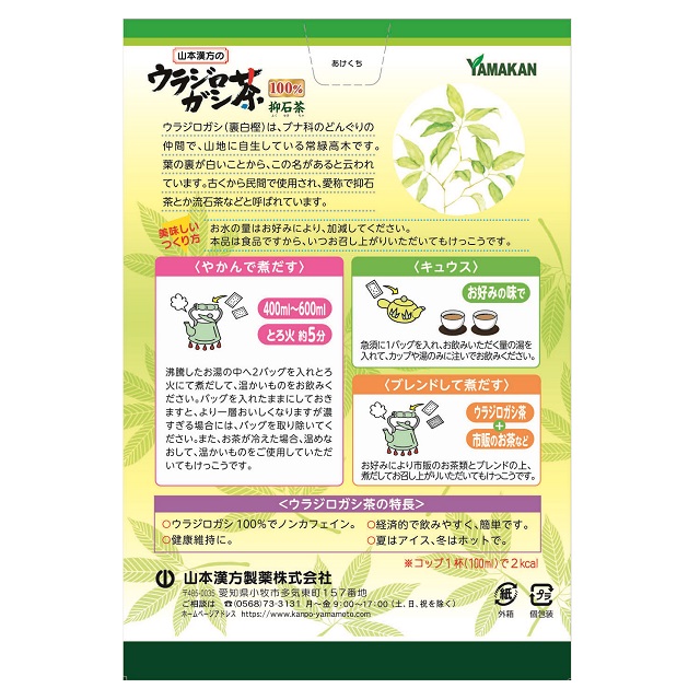 山本漢方製薬 ウラジロガシ茶100% 抑石茶 5g×20包×2個セット 健康茶 健康食品 ノンカフェイン