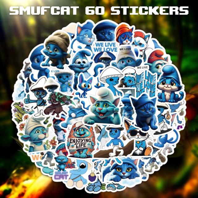 スマーフキャット ステッカー 60枚セット Smurf Cat ミーム TikTok 仮想通貨 アプリ ゲーム 猫 ねこ ネコ PVC 防水 シール