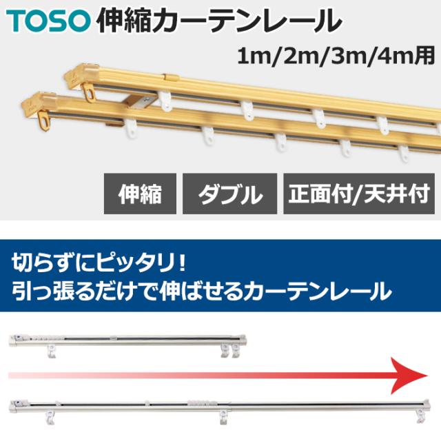 カーテンレール 伸縮 スチール ダブル 正面付け 天井付け AJ606木目 (Y) 4mセット(2.1〜4.0mに対応) ブラケット付 取付けネジ付 TOSO トーソー 伸縮レール