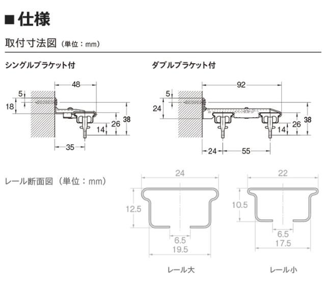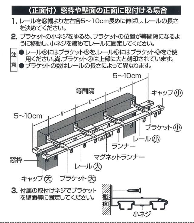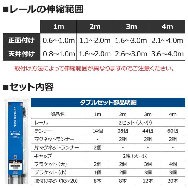 ■レールの長さ:[正面付け] 1.1〜2.0m、[天井付け] 1.6〜2.0m