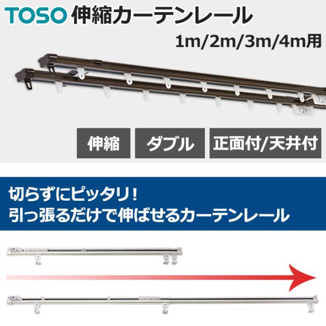 カーテンレール 伸縮 スチール ダブル 正面付け 天井付け AJ606 (Y) 2mセット(1.1〜2.0mに対応) ブラケット付 取付けネジ付 TOSO トーソー 伸縮レール