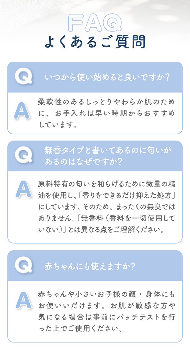 | 成分 | ■柑橘の香り 水、グリセリン、BG、ナタネ油、コメヌカ油、ミリスチン酸ポリグリセリル−10、ジイソステアリン酸ポリグリセリル−2、トリ(カプリル酸/カプリン酸)グリセリル、PEG−60水添ヒマシ油、シア脂、オリーブ果実油、カニナバラ果実油、ホホバ種子油、スクワラン、マカデミア種子油、セタノール、セイヨウオオバコ種子エキス、アロエベラ葉エキス、ダイズ種子エキス、ヒアルロン酸Na、加水分解ヒアルロン酸、水溶性コラーゲン、加水分解コラーゲン、セラミドAP、セラミドNP、PCA−Na、乳酸Na、アルギニン、アスパラギン酸、PCA、グリシン、アラニン、セリン、バリン、プロリン、トレオニン、イソロイシン、ヒスチジン、フェニルアラニン、アラントイン、ツボクサエキス、クダモノトケイソウ種子油、水溶性プロテオグリカン、3−グリセリルアスコルビン酸、ティーツリー葉油、グレープフルーツ果皮油、レモン果皮油、マンダリンオレンジ果皮油、ベルガモット果実油、ステアリン酸グリセリル(SE)、カプリル酸グリセリル、キサンタンガム、カルボマー、エチルヘキシルグリセリン、フェノキシエタノール、クエン酸、クエン酸Na、水酸化Na、EDTA−2Na ■石鹸の香り 水、グリセリン、BG、ナタネ油、コメヌカ油、ミリスチン酸ポリグリセリル−10、ジイソステアリン酸ポリグリセリル−2、トリ(カプリル酸/カプリン酸)グリセリル、PEG−60水添ヒマシ油、シア脂、オリーブ果実油、カニナバラ果実油、ホホバ種子油、スクワラン、マカデミア種子油、セタノール、セイヨウオオバコ種子エキス、アロエベラ葉エキス、ダイズ種子エキス、ヒアルロン酸Na、加水分解ヒアルロン酸、水溶性コラーゲン、加水分解コラーゲン、セラミドAP、セラミドNP、PCA−Na、乳酸Na、アルギニン、アスパラギン酸、PCA、グリシン、アラニン、セリン、バリン、プロリン、トレオニン、イソロイシン、ヒスチジン、フェニルアラニン、アラントイン、ツボクサエキス、クダモノトケイソウ種子油、水溶性プロテオグリカン、3−グリセリルアスコルビン酸、ティーツリー葉油、ステアリン酸グリセリル(SE)、カプリル酸グリセリル、キサンタンガム、カルボマー、エチルヘキシルグリセリン、フェノキシエタノール、クエン酸、クエン酸Na、水酸化Na、EDTA−2Na、香料 ■無香タイプ 水、グリセリン、BG、ナタネ油、コメヌカ油、ミリスチン酸ポリグリセリル−10、ジイソステアリン酸ポリグリセリル−2、トリ(カプリル酸/カプリン酸)グリセリル、PEG−60水添ヒマシ油、シア脂、オリーブ果実油、カニナバラ果実油、ホホバ種子油、スクワラン、マカデミア種子油、セタノール、セイヨウオオバコ種子エキス、アロエベラ葉エキス、ダイズ種子エキス、ヒアルロン酸Na、加水分解ヒアルロン酸、水溶性コラーゲン、加水分解コラーゲン、セラミドAP、セラミドNP、PCA−Na、乳酸Na、アルギニン、アスパラギン酸、PCA、グリシン、アラニン、セリン、バリン、プロリン、トレオニン、イソロイシン、ヒスチジン、フェニルアラニン、アラントイン、ツボクサエキス、クダモノトケイソウ種子油、水溶性プロテオグリカン、3−グリセリルアスコルビン酸、ティーツリー葉油、グレープフルーツ果皮油、レモン果皮油、マンダリンオレンジ果皮油、ベルガモット果実油、ステアリン酸グリセリル(SE)、カプリル酸グリセリル、キサンタンガム、カルボマー、エチルヘキシルグリセリン、フェノキシエタノール、クエン酸、クエン酸Na、水酸化Na、EDTA−2Na |