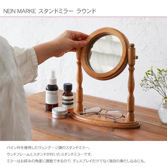 NEIN MARKE ナインマーケ 木製 スタンドミラー ラウンド _PP02 92400011 鏡 卓上ミラー 角度調整 北欧 ナチュラル シンプル インテリア ラウンドミラー