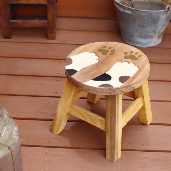 猫雑貨 肉球 グッズ スツール 木製 おしゃれ 丸 ウッド コンパクト アンティーク 椅子 インテリア