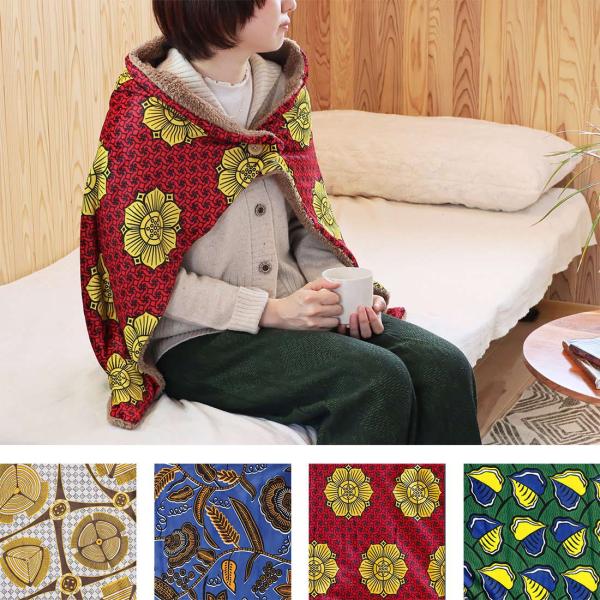 ブランケット アフリカンプリント エキゾチックなデザインのアフリカンプリントの柄を再現 西アフリカでは「バーニュ(フランス語:腰巻布)」、東アフリカでは「キテンゲ(スワヒリ語:布)」と呼ばれ、親しまれている「ワックスプリント」の柄をデジタルプリントで再現しました。 表面はなめらかな触り心地のマイクロポリエステル、内側は暖かいボア仕様。 ボタン穴は調整用に二つ開いており、簡単に調整することができます。 ひざ掛け、肩掛け、腰巻きの3WAYでお使いいただけます。 生産地 中国 サイズ 約100×70cm 素材 表地:ポリエステル95%、ポリウレタン5% 裏地:ポリエステル100%