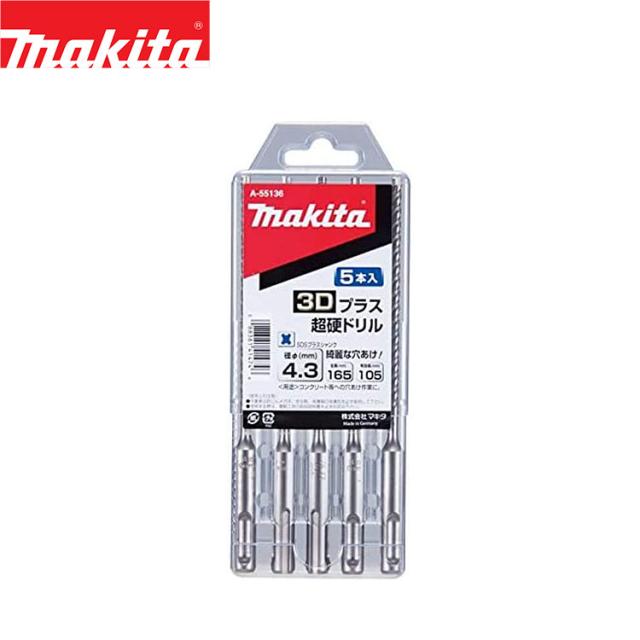 3Dプラス超硬ドリル (SDSプラス) 5本入り A-55114 全長115mm 有効長55mm 径3.4mm