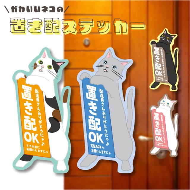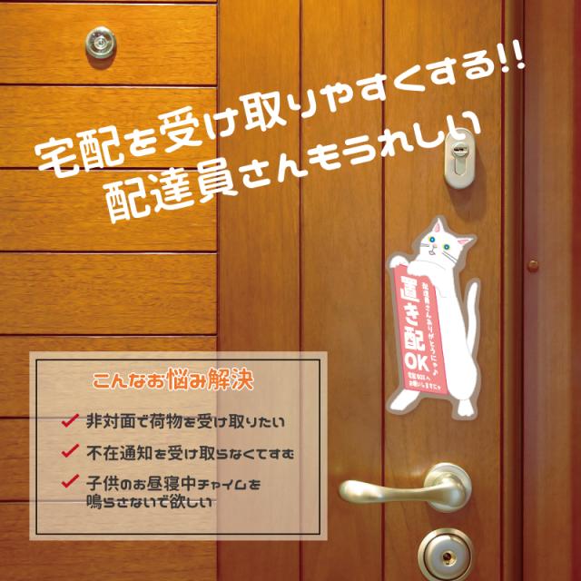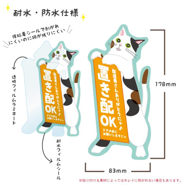 置き配ステッカー 猫 縦長タイプ 宅配BOX ドアの前 選べる文言2タイプ 耐水 防水 シール 宅配 玄関前チャイム インターホン 不要 ありがとう 感謝 メッセージ 猫 ネコ おしゃれ 宅急便 不在時 留守 荷物 ステッカー 可愛い かわいい カワイイ 送料無料 配達