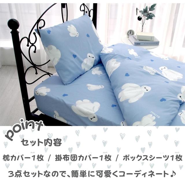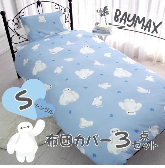 寝具 布団カバー カバーセット かわいい ベイマックス Baymax ディズニー オールシーズン キッズ 速乾 吸収 3点セット 洗濯可 洋・和シングル 共通 しわになりにくく プレゼント カバー(代引不可)【送料無料】