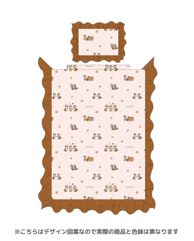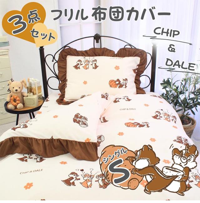 ボリュームフリルがついた布団カバー3点セットにチップ&デールが仲間入り♪ピーチスキン加工でなめらかな肌触り。さらっと速乾性が高い生地を使用。