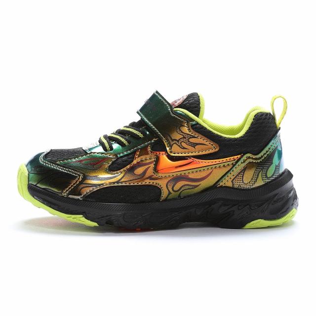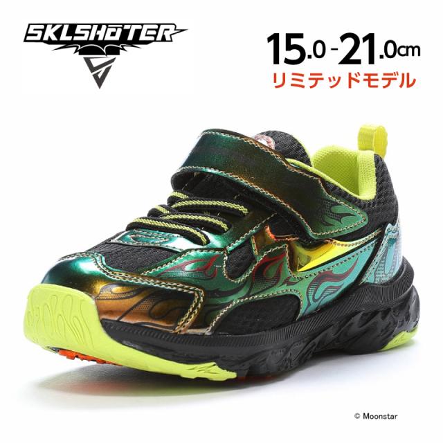 送料無料 スキルシューター 子供靴 スニーカー SK C0045 グリーン スキルを解き放て 炎スキル コロコロ ブラックチャンネル 小学生 男の子 通学 公園 男の子