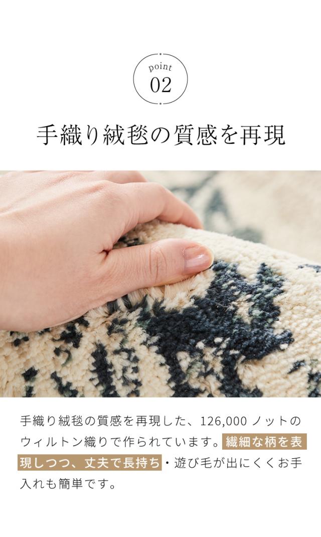 オリエンタル調の柄とシックな色合わせで高級感あるデザインのエジプト製ウィルトンラグです。