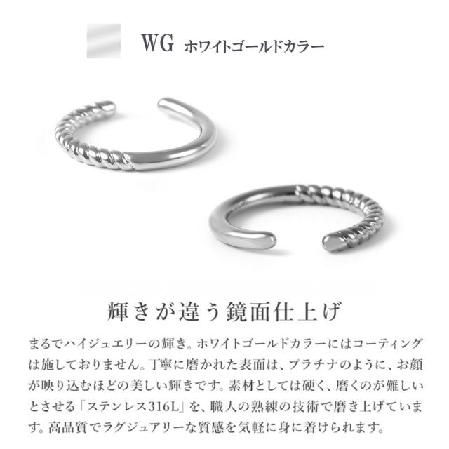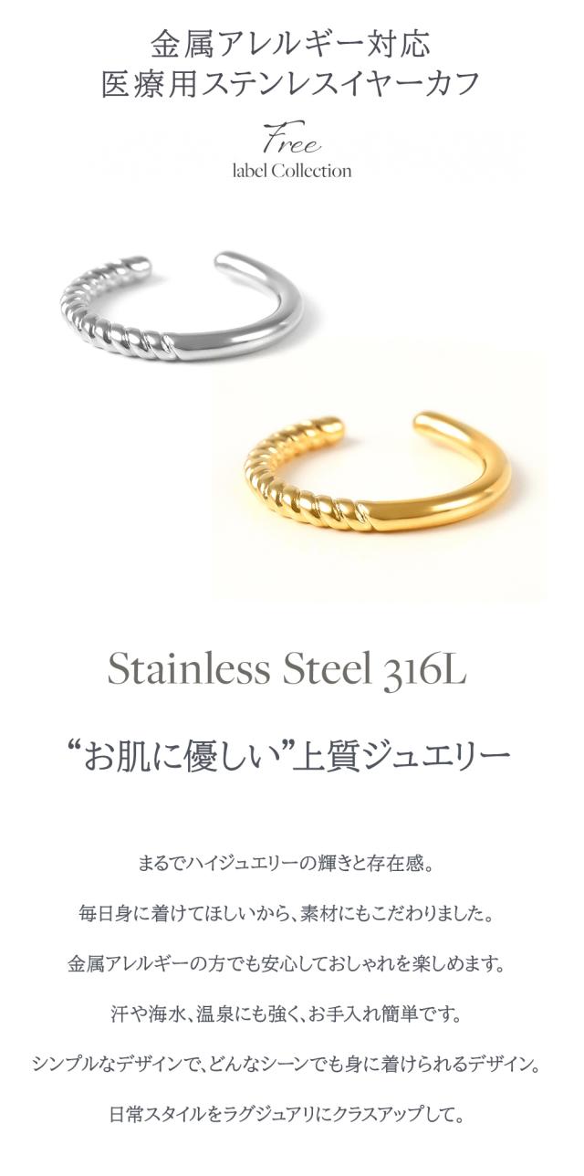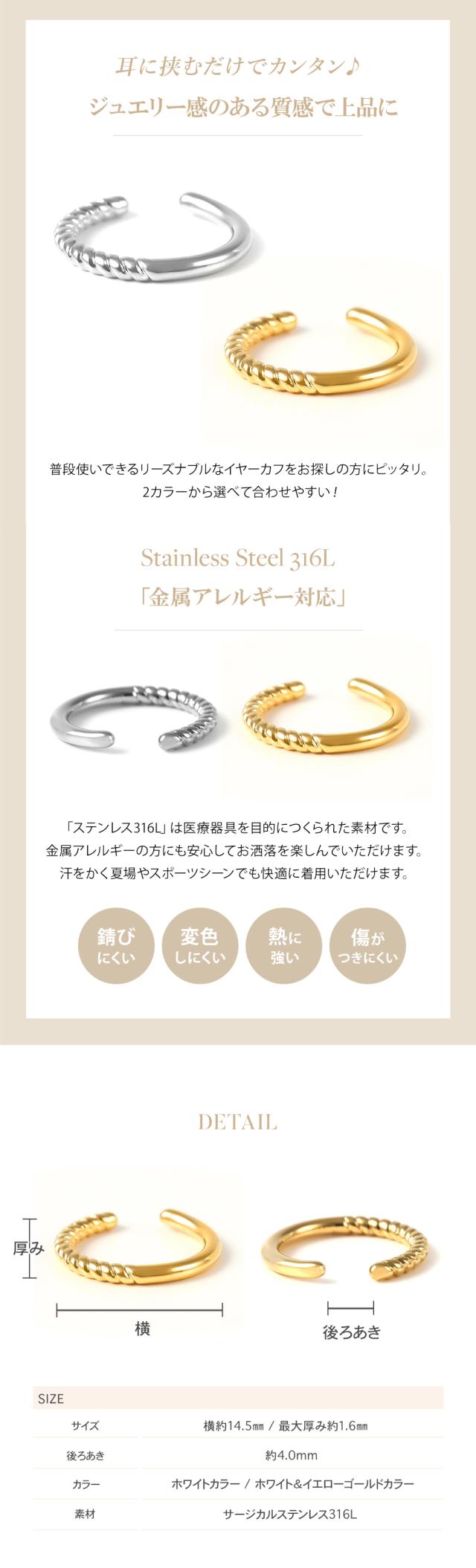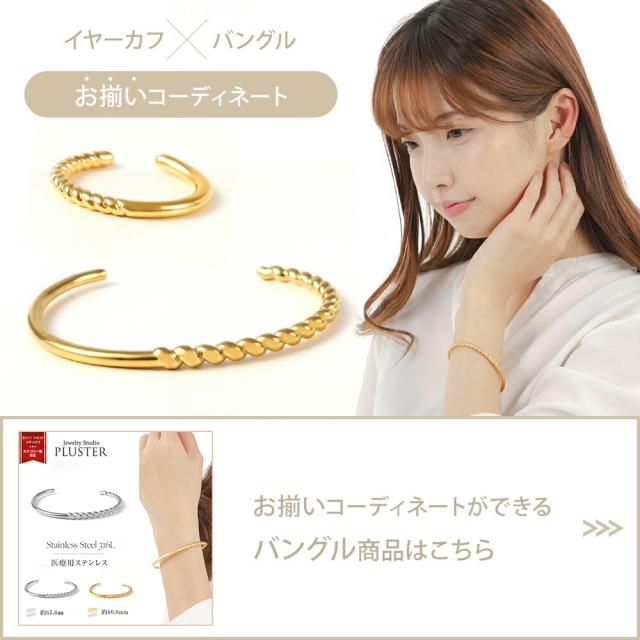 「 イヤーカフ 」は男女問わず ユニセックス で楽しめるジュエリーです。キャッチ不要で、どんな装いにも合う、万能アイテム。つけるだけで顔まわりのアクセントになるイヤーカフは、今年の「 トレンドアクセサリー 」の一つとして数えられるアイテム。「 ステンレス 316L 」は金属アレルギーに対応しているので、お肌に優しく安心です。