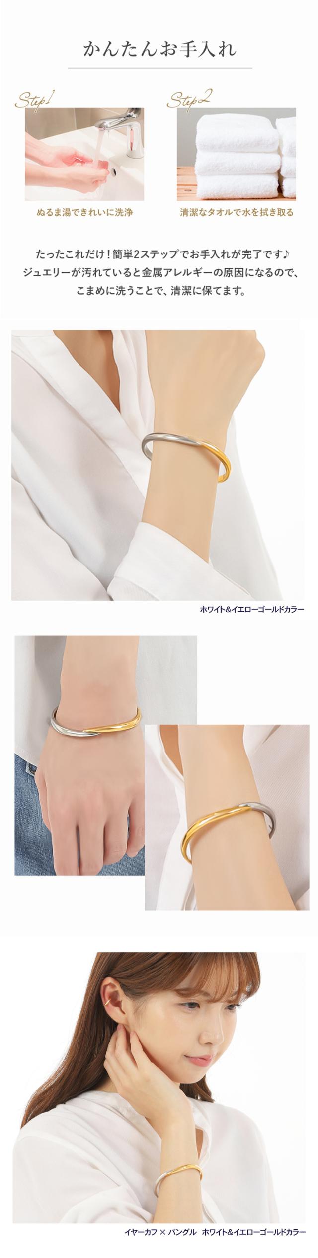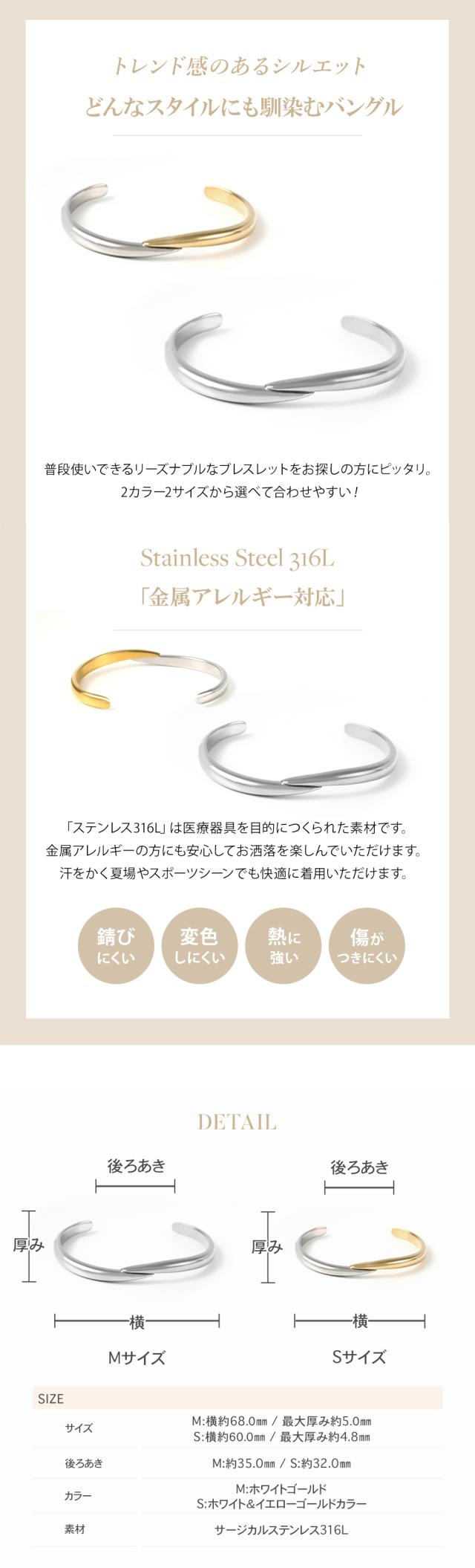 半額 ブレスレット バングル レディース 金属アレルギー対応 つけっぱなし サージカル ステンレス 医療用 ステンレス316L ホワイト イエロー ゴールド 太め ライン ジュエリー アクセサリー アレルギーフリー シンプル 誕生日 クリスマス プレゼント 女性 ギフト
