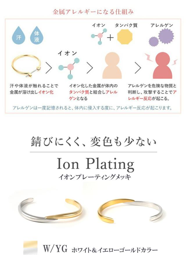 「ステンレス316L」は、”錆びにくく変色も少ない”という特徴があります。そのため、汗などに接触しても金属が溶け出しにくく、アレルギー反応を起こしにくいので、近年金属アレルギー対応のジュエリー素材として使用されています。アレルギーの方でも安心・安全にオシャレを楽しんでいただきたいからこそ、素材にこだわりました。