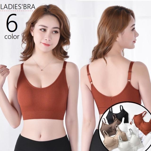 ハーフトップブラ ノンワイヤーブラジャー スポーツブラ レディース 女性 婦人 インナー リブ生地 ワイヤレスブラ カップ付き