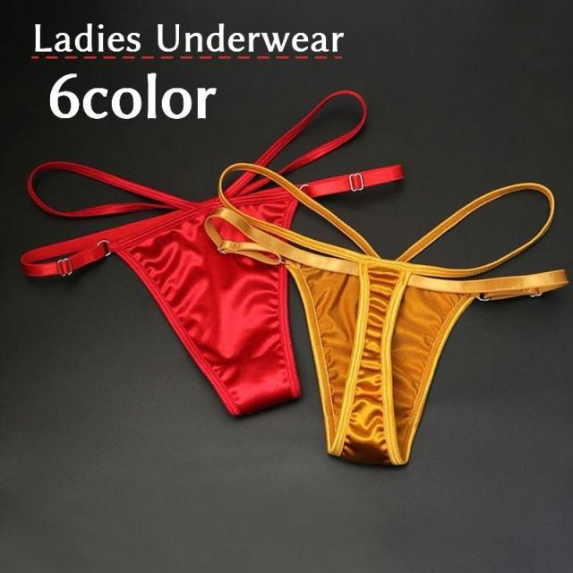 光沢感のある素材を使用したエレガントなデザインのTバックショーツ