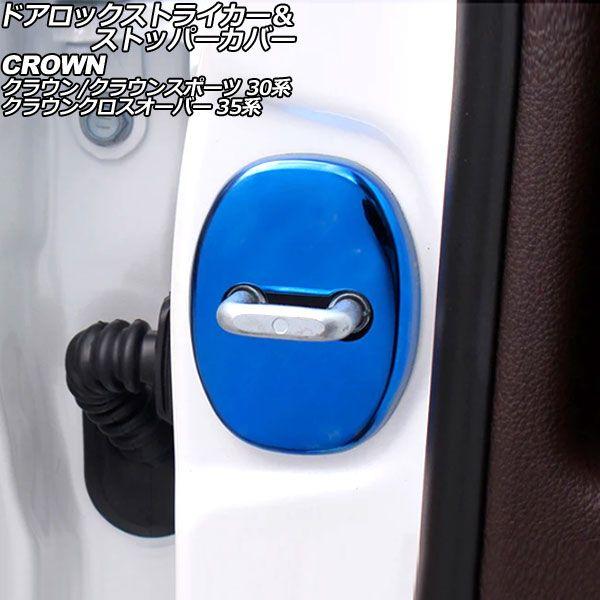 ドアロックストライカー&ストッパーカバー トヨタ クラウンクロスオーバー 35系 2022年09月〜 ブルー ステンレス/ABS製 入数:1セット(8個) AP-IT3412-BL