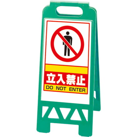 ●高さ(mm):680●摘要:折りたたみ式●奥行(mm):37●本体色:グリーン●間口(mm):300●色:グリーン●内容:○○立入禁止DONOTENTER(○○文字入れサイズ33×230mm)●寸法(mm):680×300×37・表示ステッカー/417×257