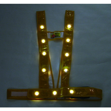 ●背中に反射帯付●プリズム式反射(カラー:ゴールド、オレンジ)●反射テープ:幅50mm●LED22個(点滅式)