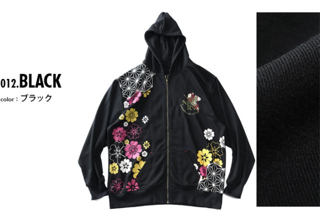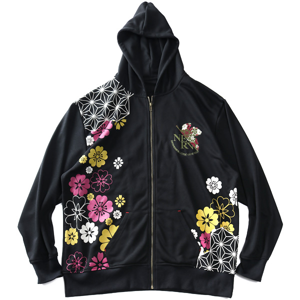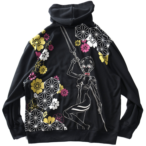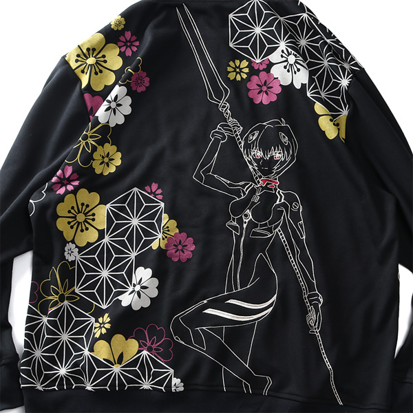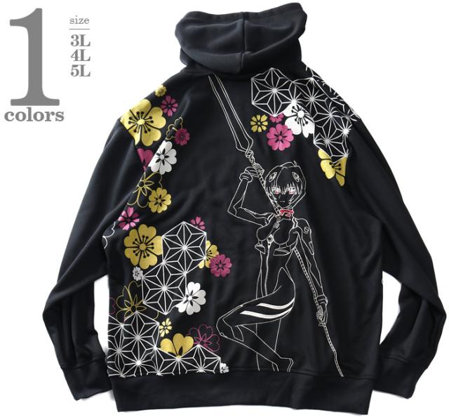 大きいサイズ メンズ EVANGELION × 錦 エヴァンゲリオン×ニシキ 華小紋綾波 刺繍 フルジップ パーカー 544200k