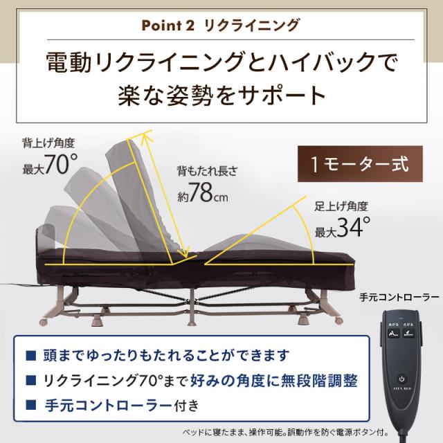 【公式】電動リクライニングベッド(1モーター) AX-BE721 折りたたみベッド シングル 電動ベッド 非課税 アテックスベッド 介護 沖縄・離島追加請求あり アテックス ATEX 実用的 おすすめ 母の日 おうち時間 2026