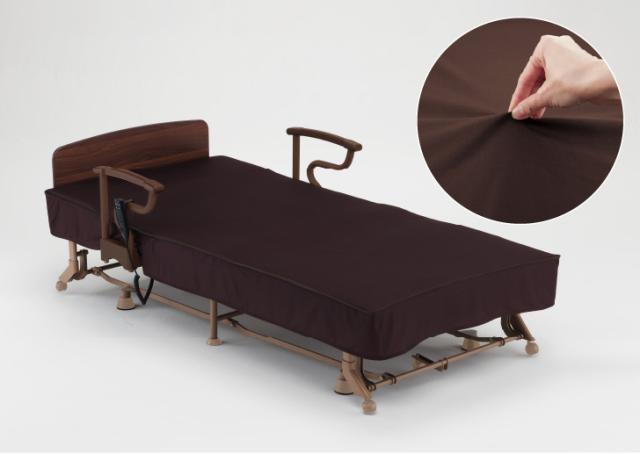 2重縫製を用いたマットカバーがフレームを覆い隠し、スッキリとシンプルな印象を与えます。素材はシワになりにくいストレッチ生地を使用しています。