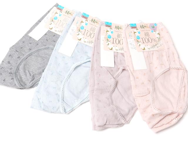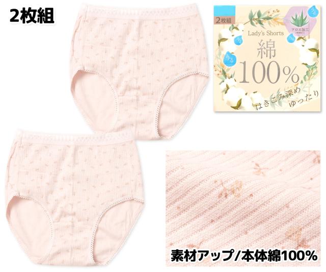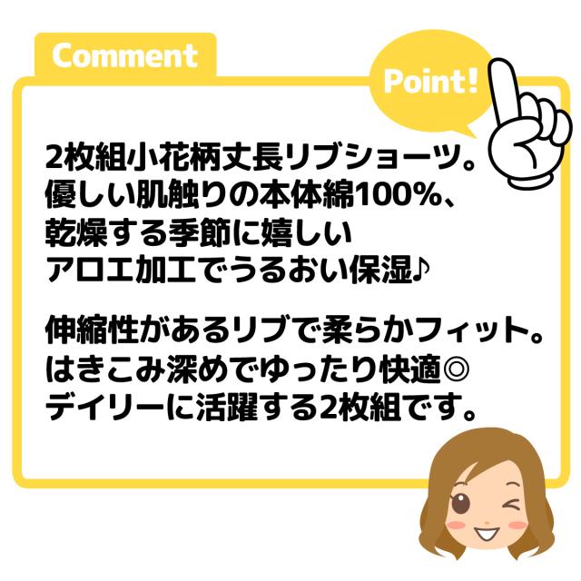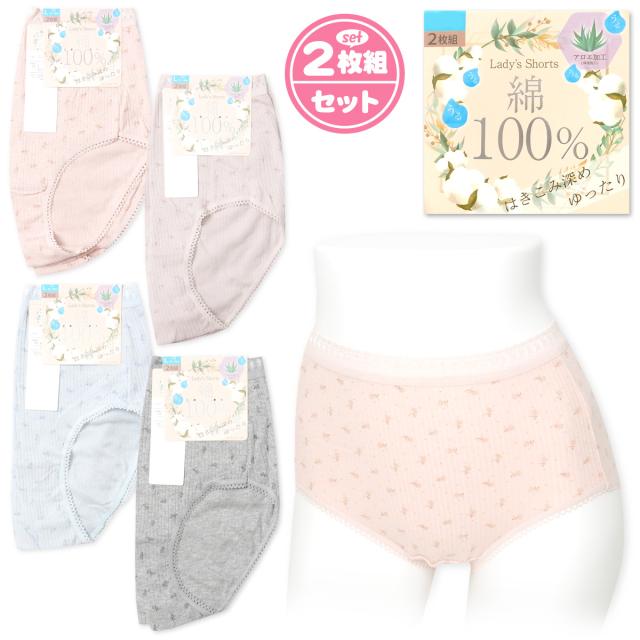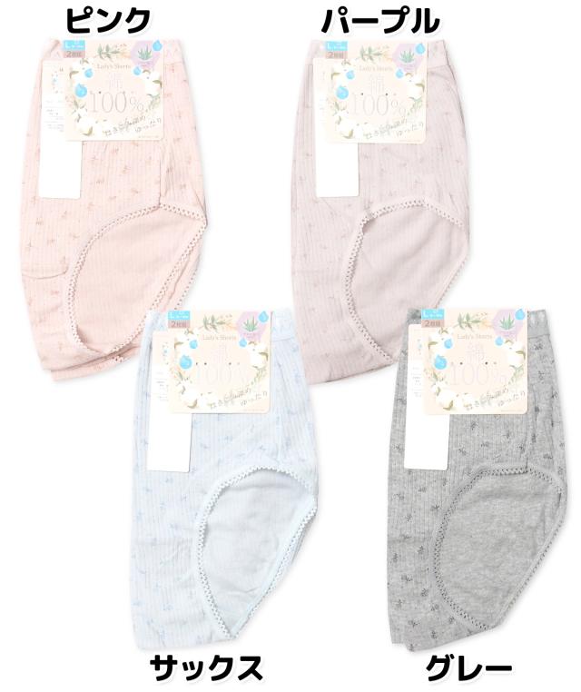 【送料無料】2枚組セット 婦人 レディース ショーツ リブ 本体綿100% アロエ加工 保湿 丈長 小花柄 下着 yg-2201【メール便対応】