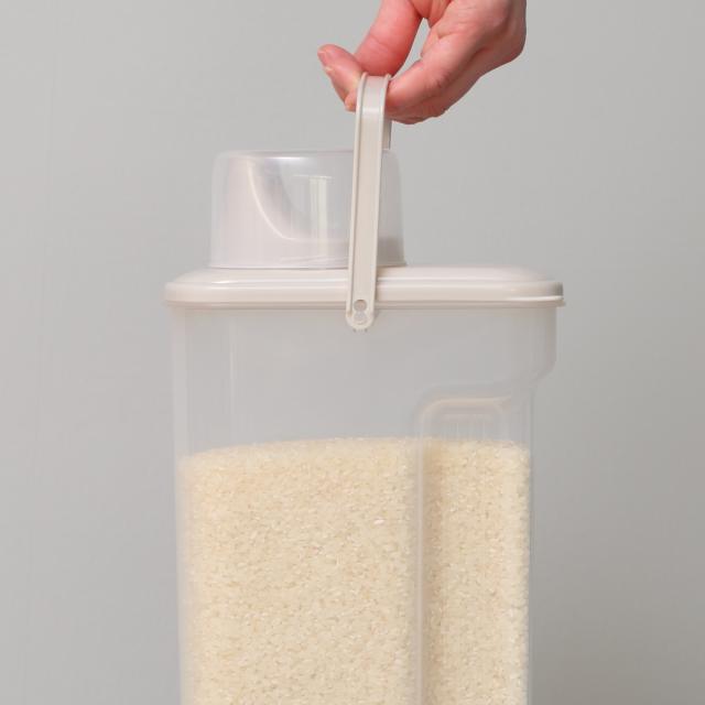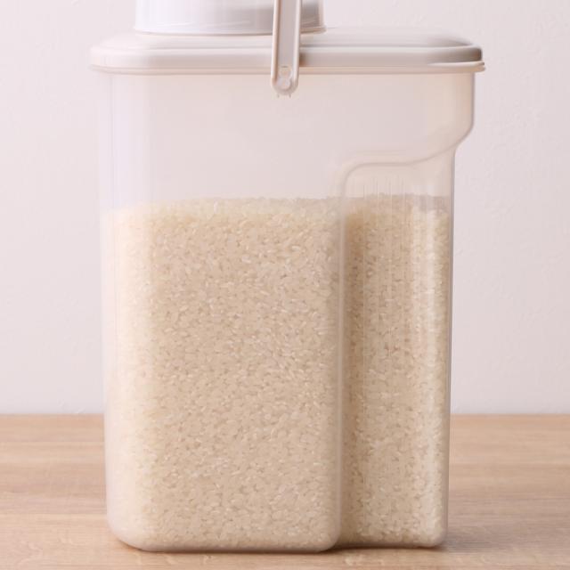 ケースは透明なのでお米の残量が一目で分かります。中の状態が見えることで、買い足しのタイミングがわかりやすく、買い忘れ防止にも繋がります。