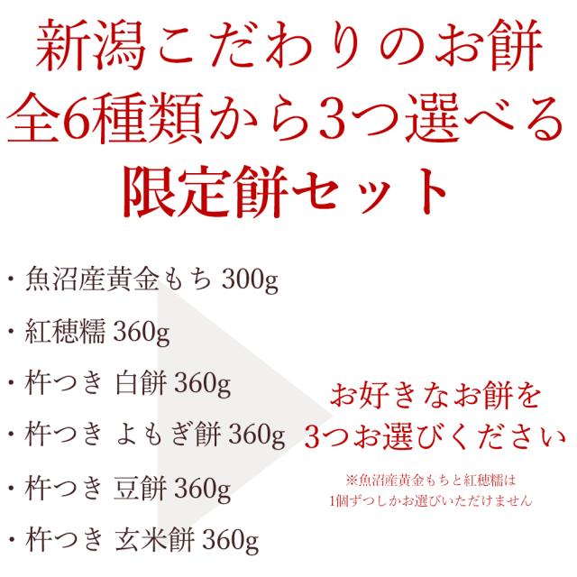 切り餅 6種類から選べる限定餅セット 合計3パック 魚沼産黄金もち 色餅 紅穂糯 よもぎ餅 豆餅 玄米餅 自宅用