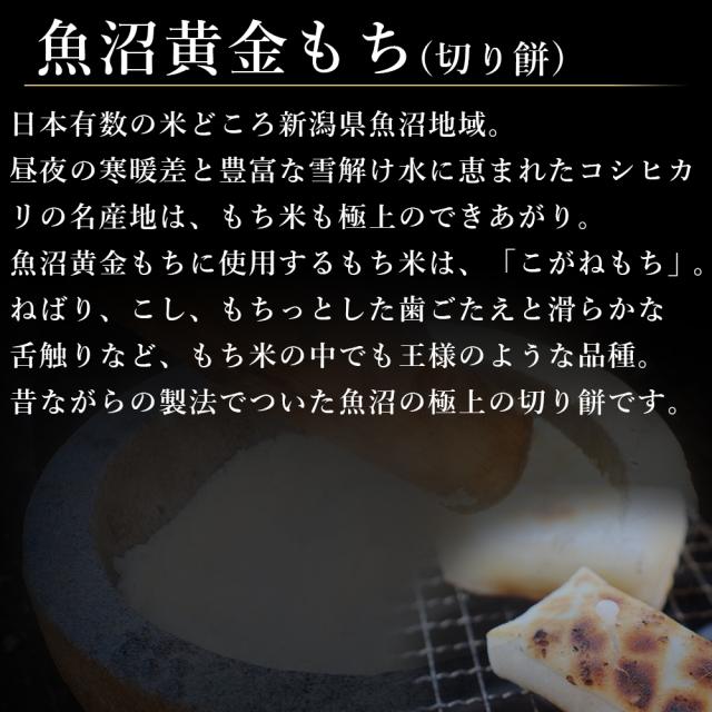 1つ目「魚沼産 黄金もち」お米の名産地魚沼で作られたこがねもち米を使用。