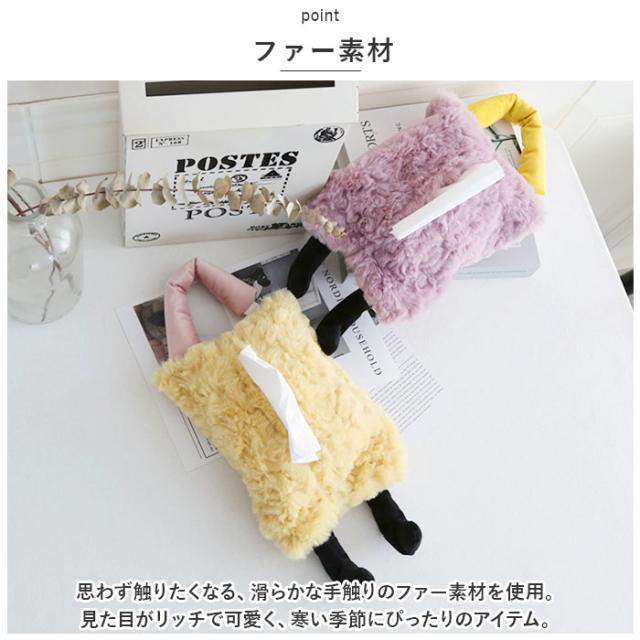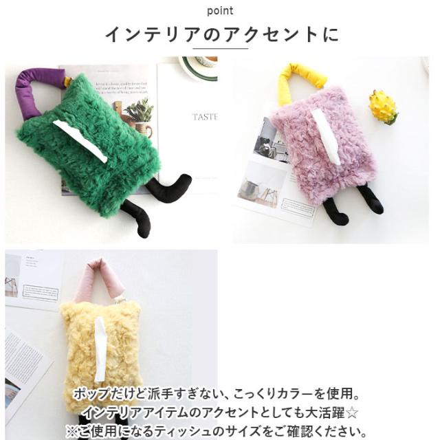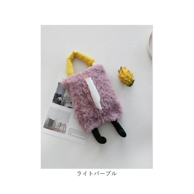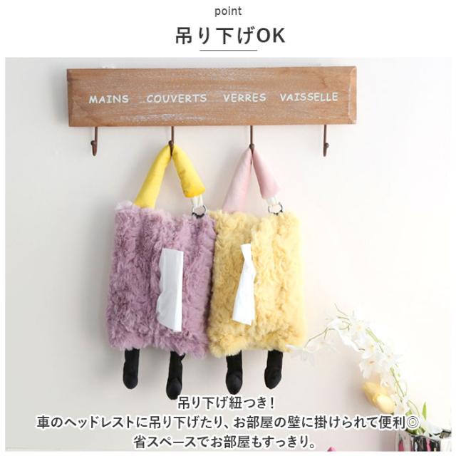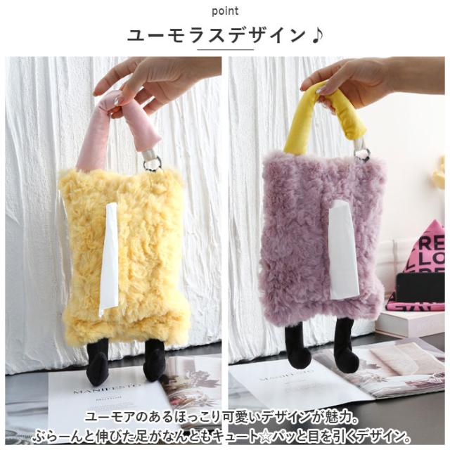 | 商品説明 | ・ファー素材でリッチに可愛く☆足つきのユーモラスデザインの「ティッシュケース」が登場。 【ファー素材】 ・思わず触りたくなる、滑らかな手触りのファー素材を使用。見た目がリッチで可愛く、寒い季節にぴったりのアイテム。 【ユーモラスデザイン♪】 ・ユーモアのあるほっこり可愛いデザインが魅力。ぶらーんと伸びた足がなんともキュート☆パッと目を引くデザイン。 【吊り下げOK】 ・吊り下げ紐つき!車のヘッドレストに吊り下げたり、お部屋の壁に掛けられて便利◎省スペースでお部屋もすっきり。 【面ファスナー仕様】 ・ペリっと剥がれる面ファスナー仕様なので、中身の入れ替えもラクラク。簡単仕様なのも嬉しいポイント。 【インテリアのアクセントに】 ・ポップだけど派手すぎない、こっくりカラーを使用。インテリアアイテムのアクセントとしても大活躍☆ ・※ご使用になるティッシュのサイズをご確認ください。 |
