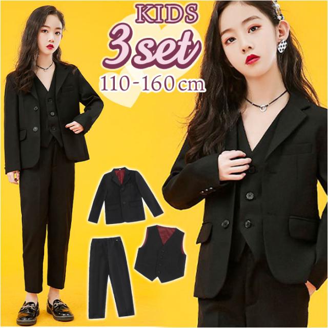 パンツスーツ 女の子 通販 子供用スーツ ジャケット パンツ ズボン ベスト クロスーツ 黒スーツ フォーマルスーツ 上衣 通学 スクール ブラックフォーマル おしゃれ かわいい 制服