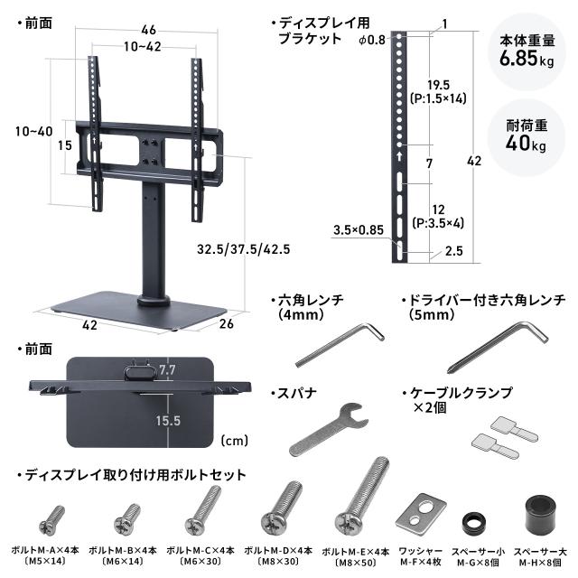 ●耐荷重は40kgまでで55インチ程度までのテレビを設置可能です。