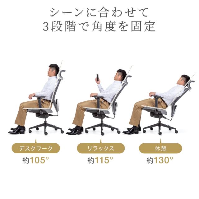 ●3段階で階度調節ができるロッキング固定機能を有していきます。