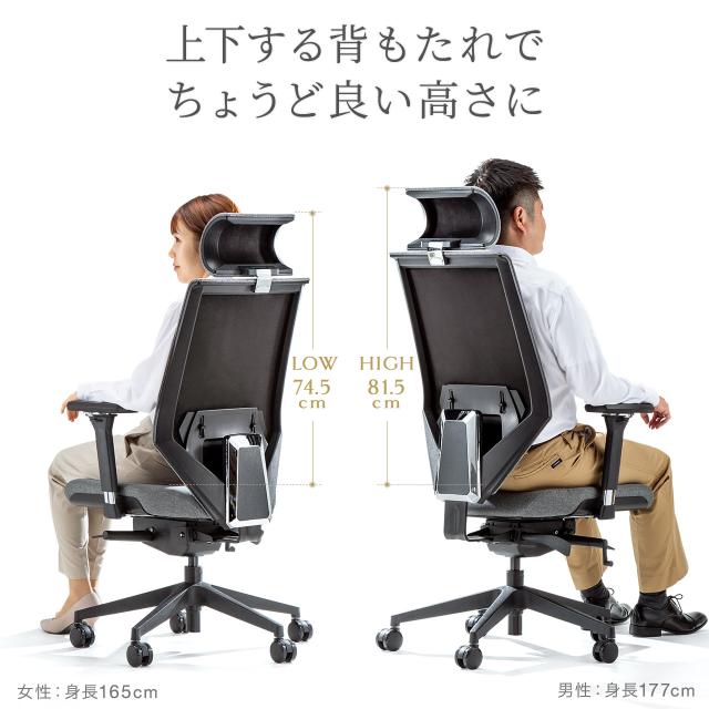 ●背もたれを上下5段階で調節可能で、ちょうどよい高さに変更可能です。