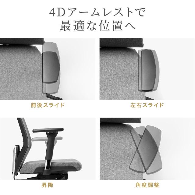 ●アームレストは4Dです。上下・前後・左右・角度変更が可能です。