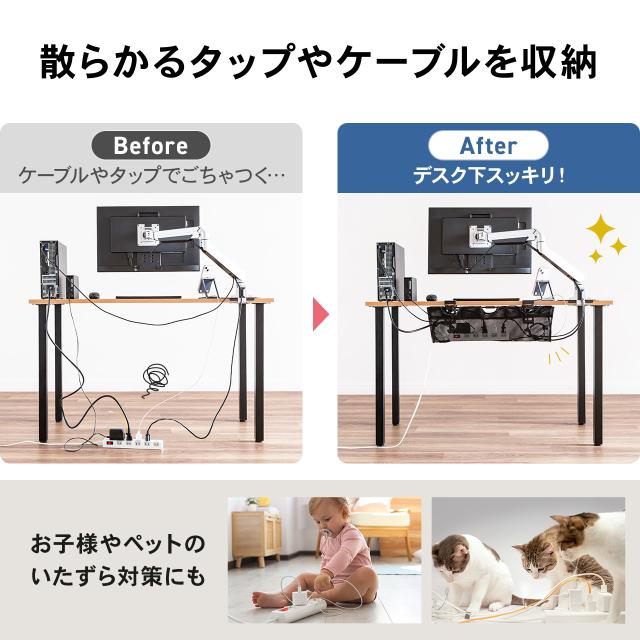 ⇒ご購入の前にご確認下さい電源タップ、ケーブルを収納でき、デスクに後付ができるケーブルトレー。クランプ式で簡単取り付け。ナイロンメッシュ製でスタイリッシュに目隠しができる。トレーの位置は前後に動かせる。汎用タイプ。【WEB限定商品】