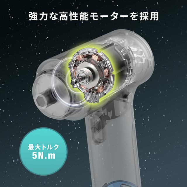 ●コンパクトサイズですが、強力な高性能モーターを採用しており、最大トルク5N.mで、ハイパワー、低ノイズを実現。を実現しています。