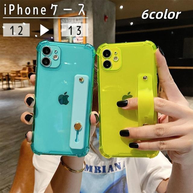 iPhoneケース iPhoneカバー クリアケース スマホスタンド 透明 落下防止ベルト 落下保護 傷防止 スマホケース スマ