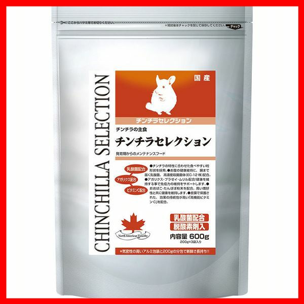 チンチラフード チンチラ 餌 チンチラセレクション 600g(200g×3) イースター チンチラフード 総合栄養食 チンチラ 餌 チンチラの主食 フード えさ ビタミンC 乳酸菌 発育期