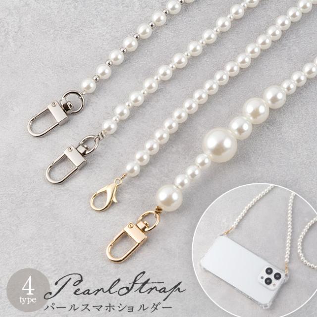パール 真珠 120cm スマホショルダー ストラップ 大人 かわいい フェミニン はさむ 挟む スマホ スマートフォン ショルダー 斜めがけ 首掛け 肩掛け ショルダーストラップ iphone android 可愛い パーティ 結婚式 フォーマル