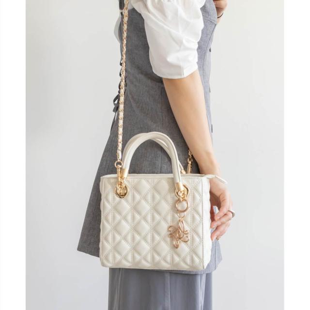 上品なキルティングにゴールドの金具使いが女性らしく、フェミニンなスタイルにぴったりです。