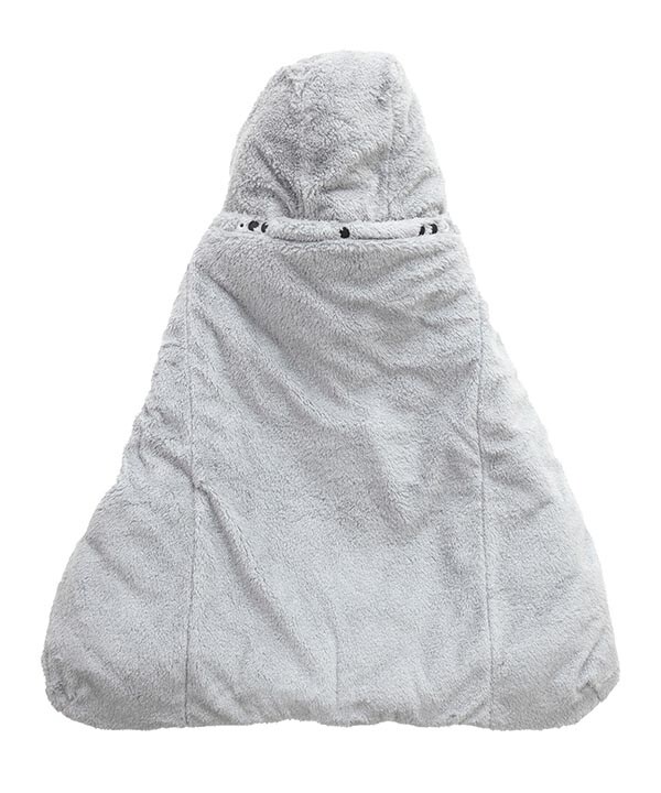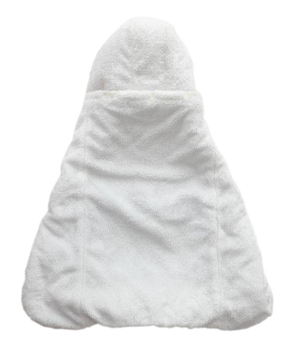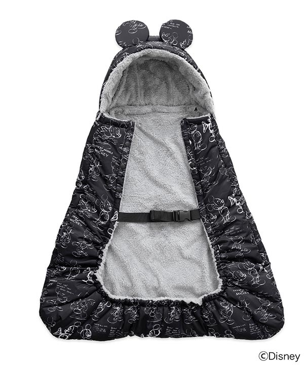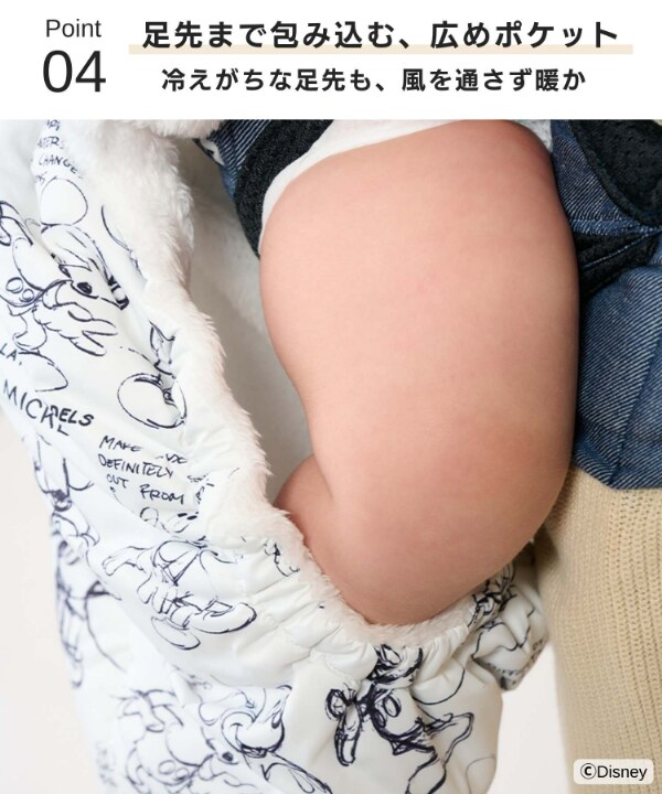 ケープは赤ちゃんの足先まで包み込む広めのポケットで、冷えがちな足先も風を通さず暖かい!