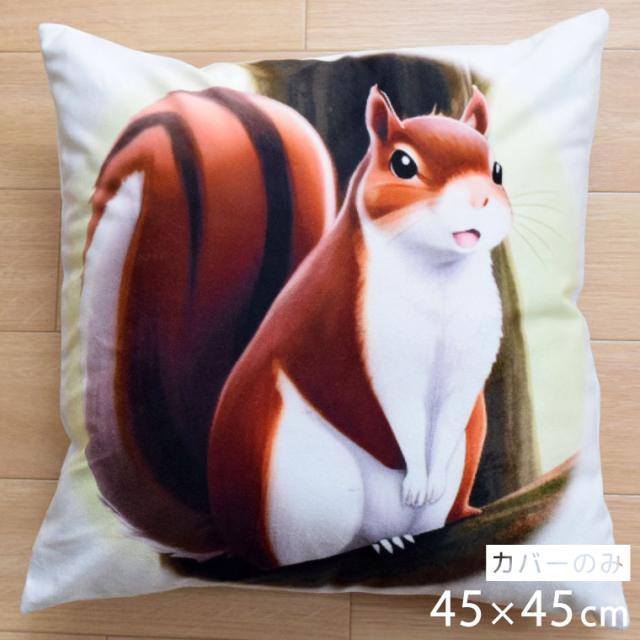 クッションカバー 約45×45cm 洗える おしゃれ アニマル かわいい 洗い替え りす リス イラスト 子供部屋 北欧 背あてクッション ソファー正方形 フロアクッション 転写