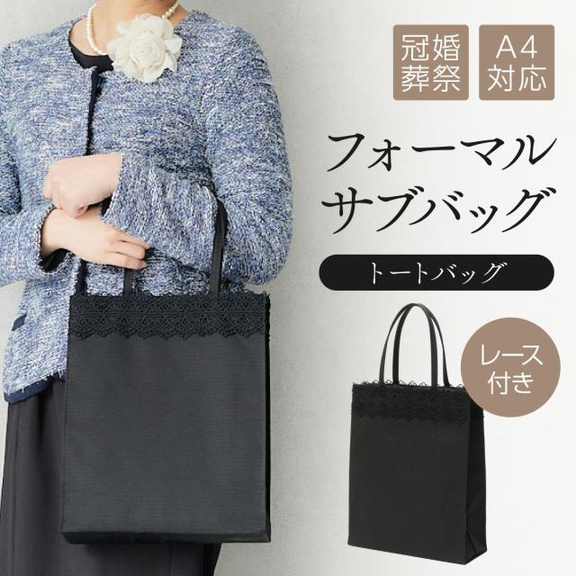 | サブバッグ フォーマルバッグ トートバッグ A4 黒 マチ 慶弔両用 レース レディース |
