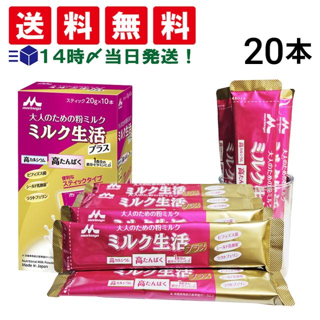 【 送料無料 】 森永乳業 大人のための 粉ミルク ミルク生活 プラス スティック タイプ (1本 20g) ×20本 セット 大人用 ミルク 健康習慣