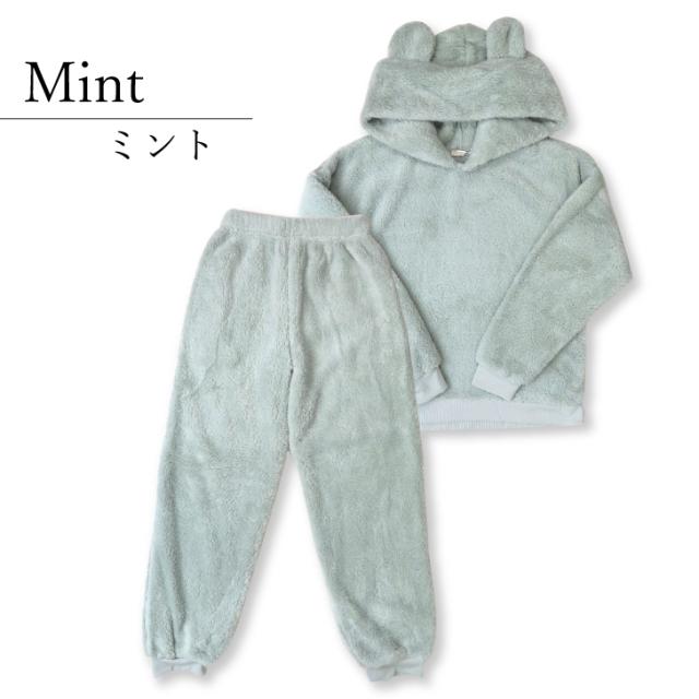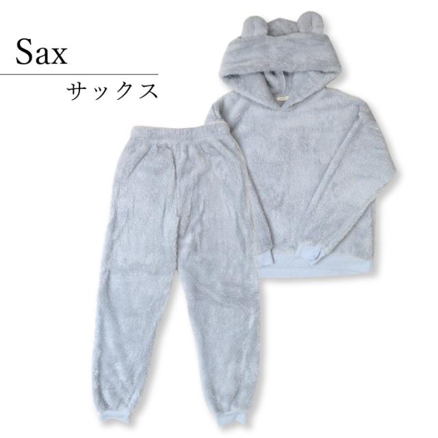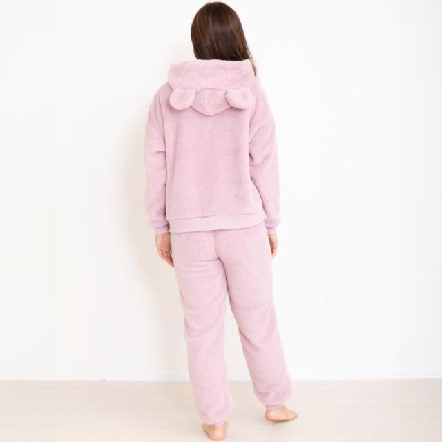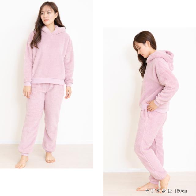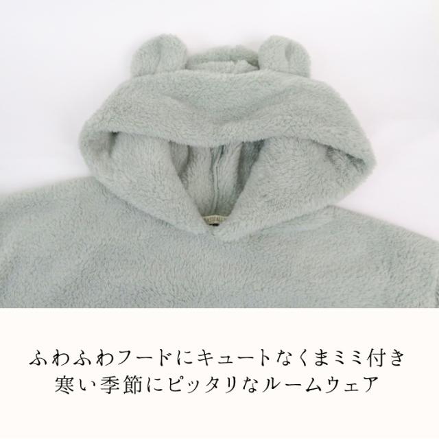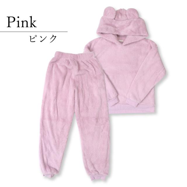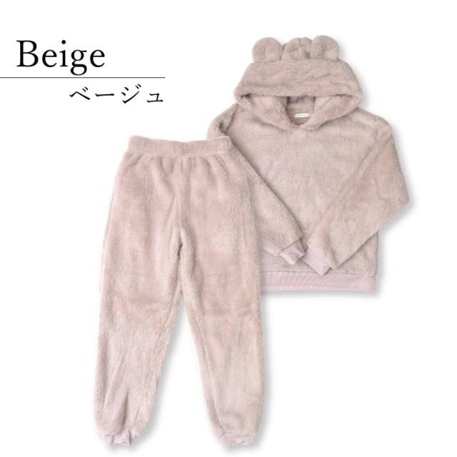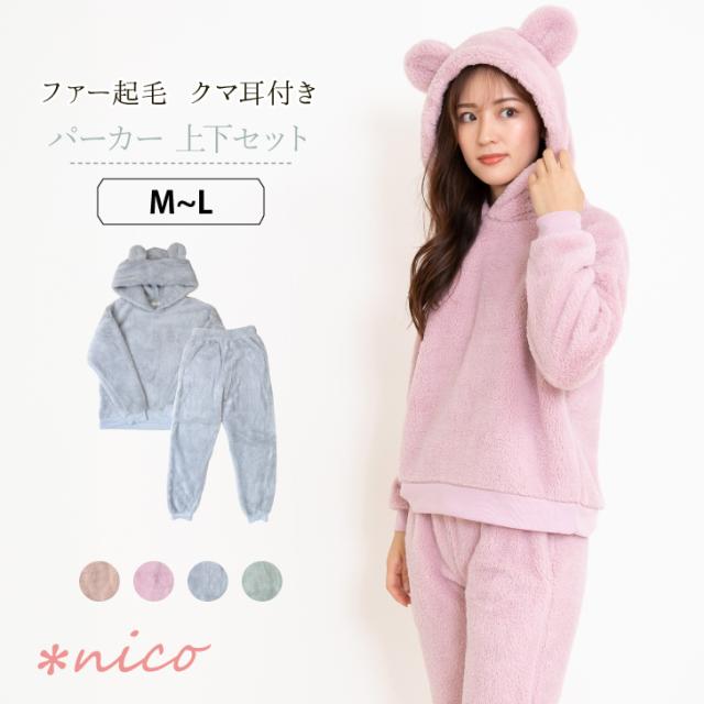 ファー起毛 クマ耳 パーカー 上下セット (97488)[メール便不可]【ルームウェア パジャマ レディース 女性 部屋着 秋物 冬物 秋冬物 長袖 フード付き セットアップ パンツ オールシーズン 寝巻 かわいい】
