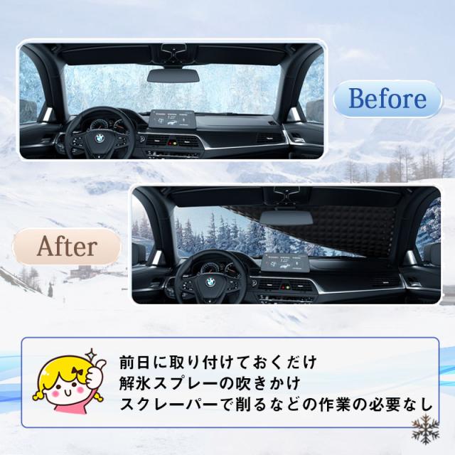 - 届いた日に雪が降っていたので夜シートを被せて朝仕事に行く時、はがすだけで、とても便利でした。これから雪が降った時も仕事終わりにシートをしておけば楽だと思います。